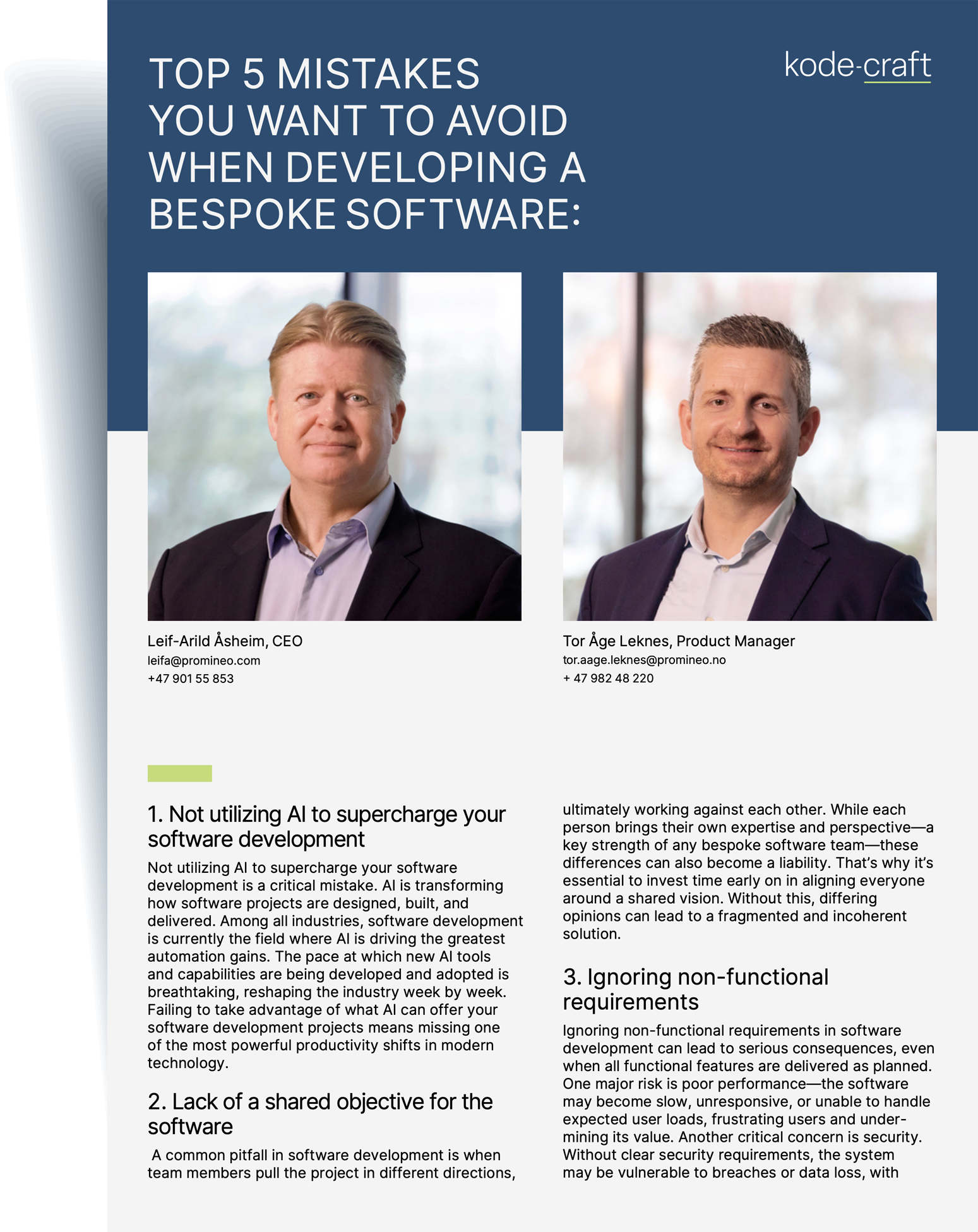 Download our PDF about the top 5 mistakes you want to avoid while developing bespoke software.